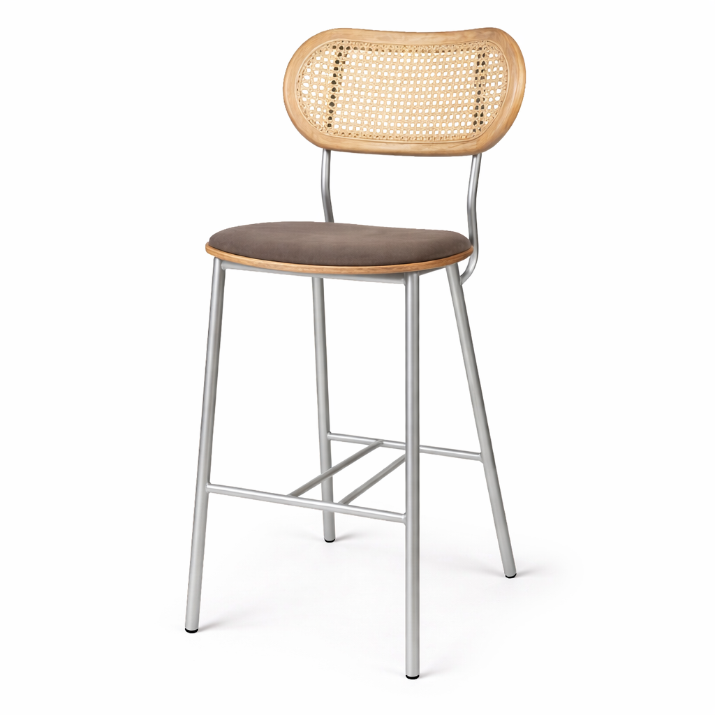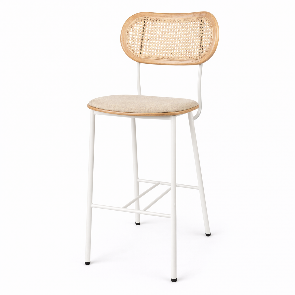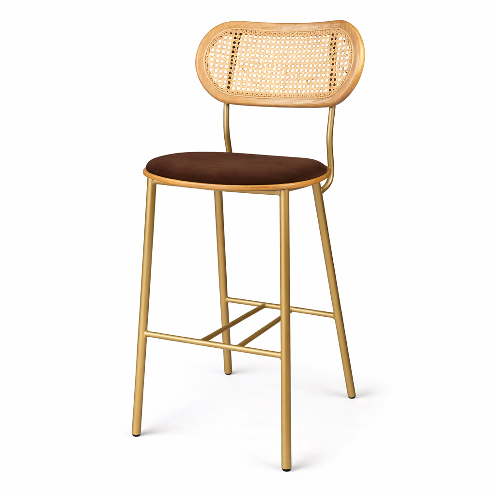 כסא בר גוצ'י מרופד עשוי עץ אלון איכותי וראטן טבעי