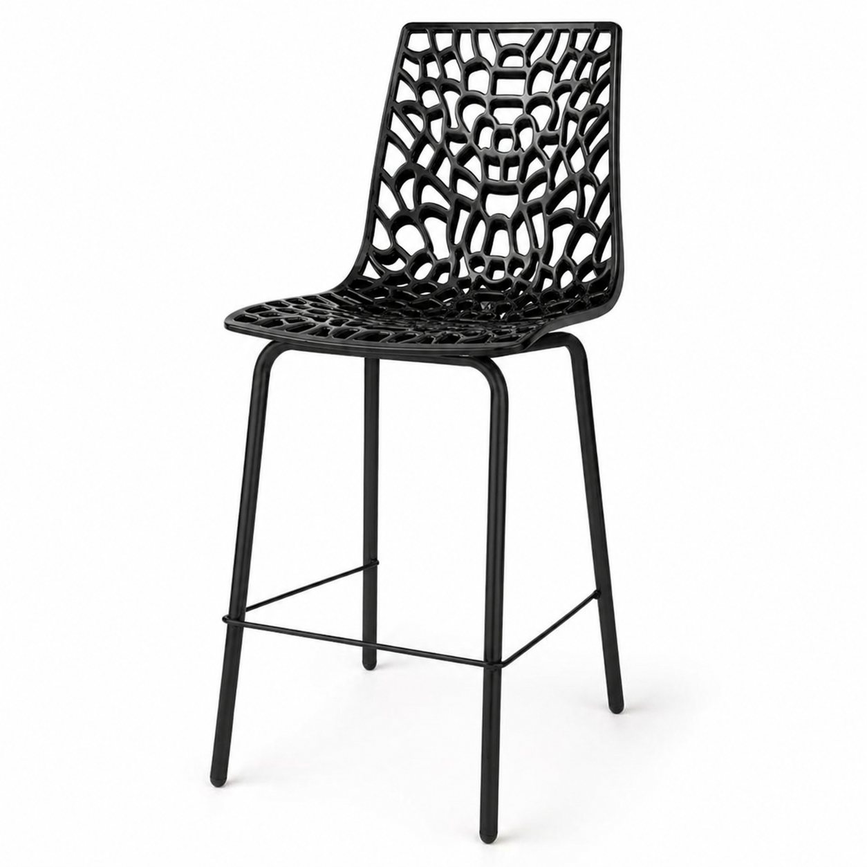 בעל מושב עשוי פלסטיק לבן/ שחור מבריק בשילוב רגל חזקה במיוחד בייצור ייחודי של Chair2u בגובה 65 ס"מ.