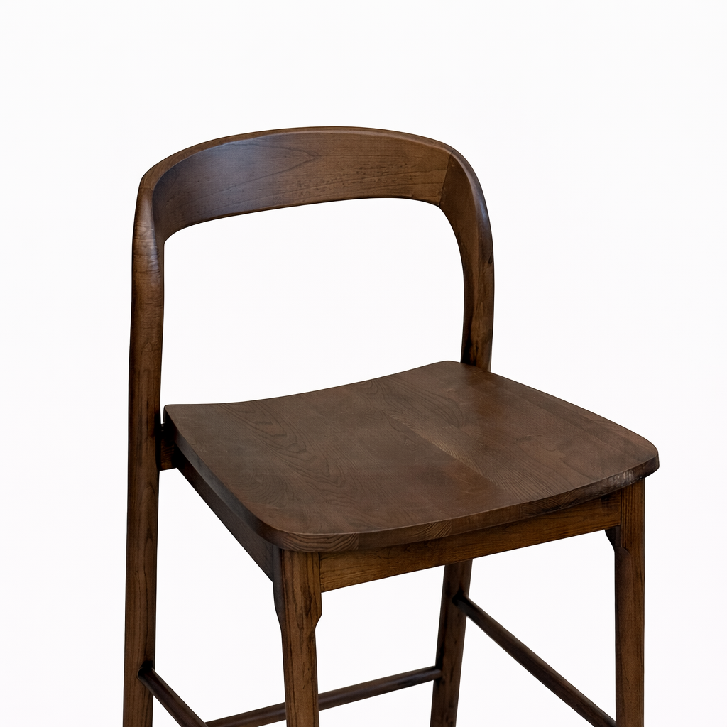 כסא בר דגם מרטין מעץ מלא בגוון אגוז בעל גימורי עץ אלגנטים ועיצוב מורדני גובה 65 ס"מ