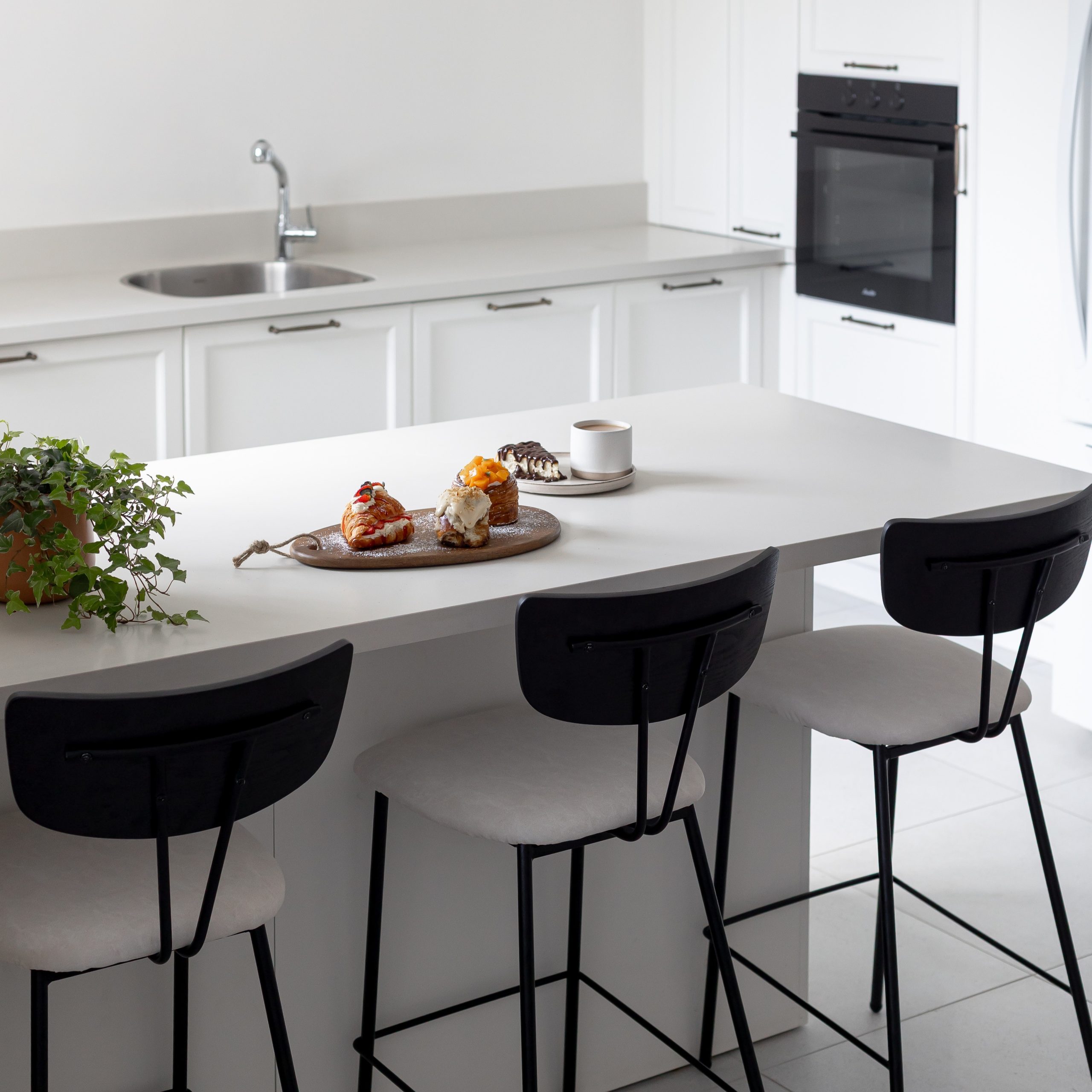 כסא בר צ'ייסר מרופד שחור ייצור בלעדי מקומי מבית Chair2u בעל משענת עץ אלון מושחר איכותי בריפוד לפי בחירתך.