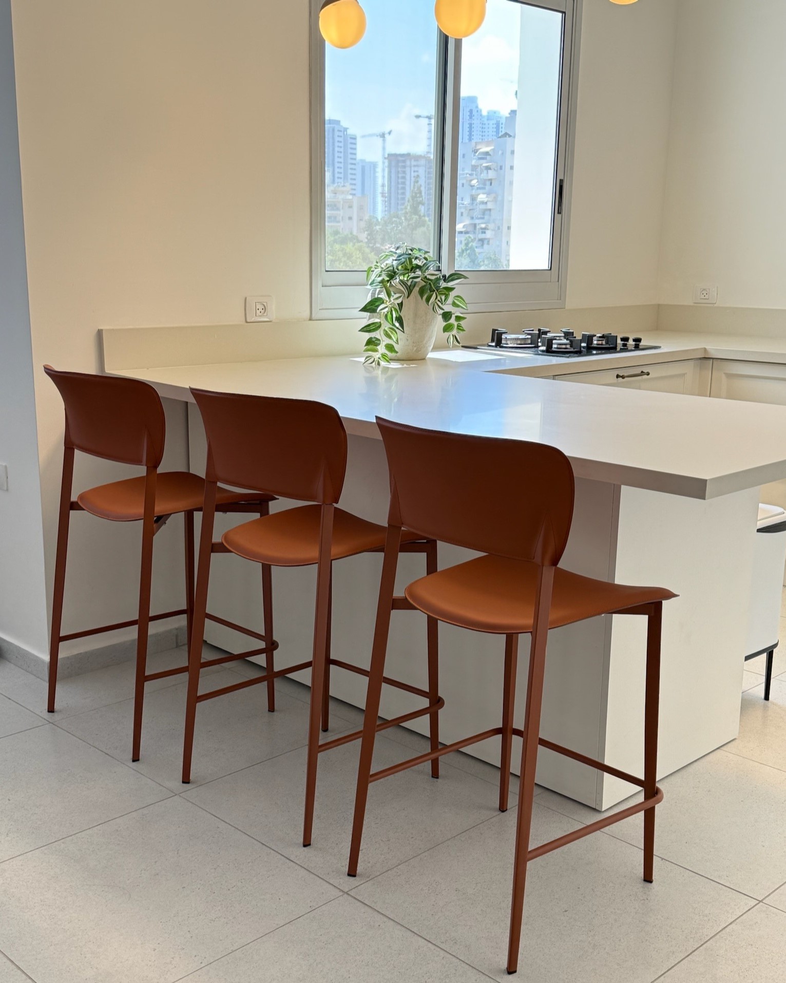 כיסא בר רובי בריפוד דמוי עור בגוון חמרה איכותי ועיצוב מודרני בעל רגלי מתכת בגוון תואם