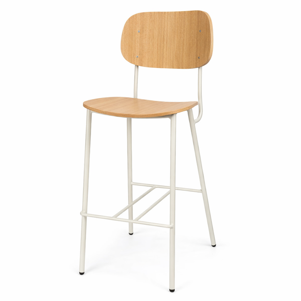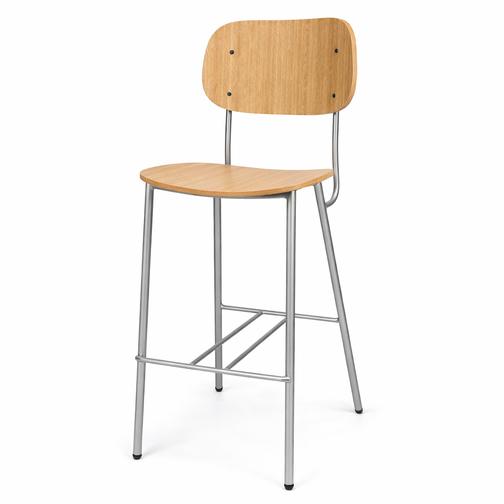 כסא בר ריץ ייצור בלעדי מקומי מבית Chair2u מגיע במושב וגב עץ פורניר אלון/ אגוז/ מושחר.