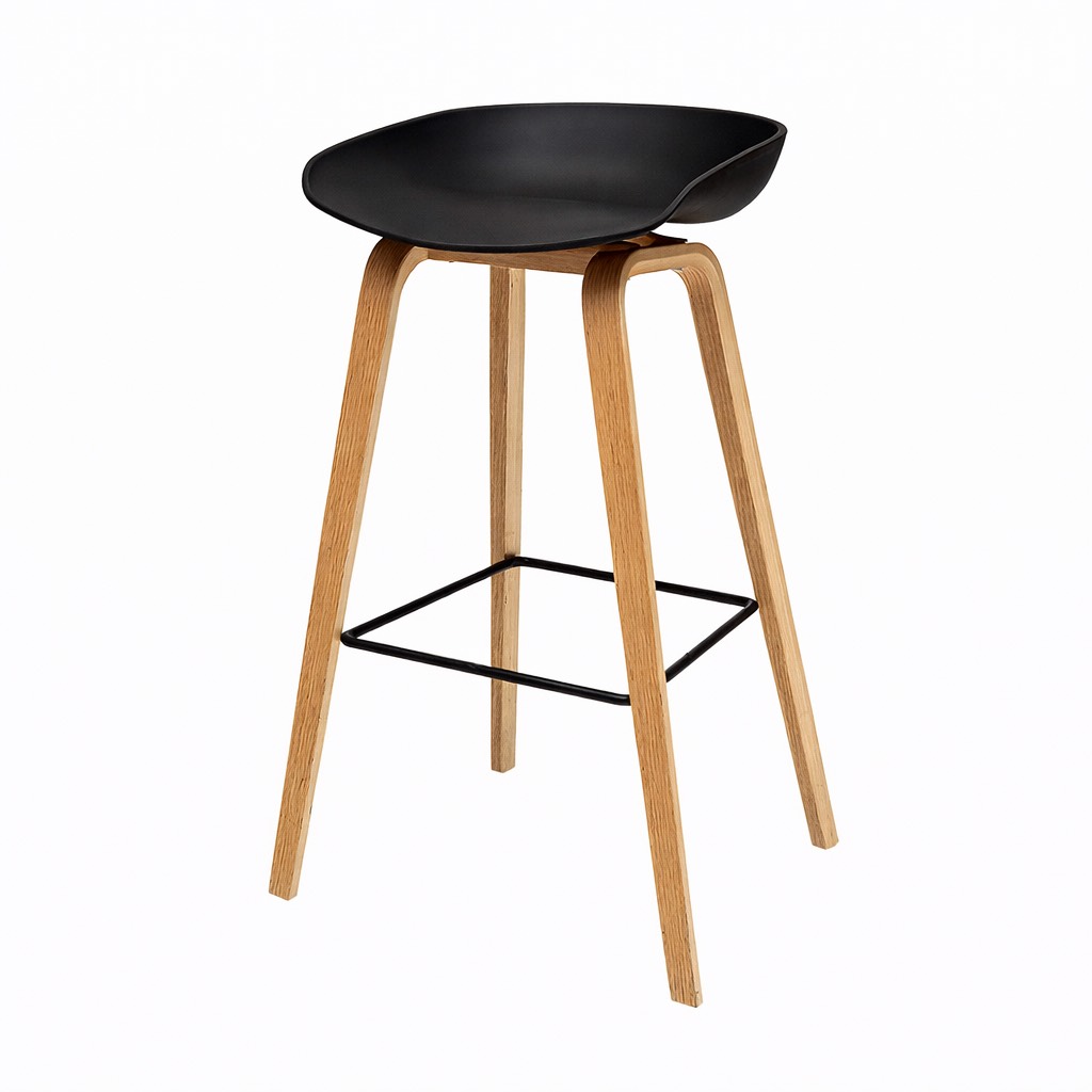כסא בר דגם שקד בעל מושבי פלסטיק פוליפרופילן שחור ורגלי עץ בוק איכותיות בגובה 65 ס"מ