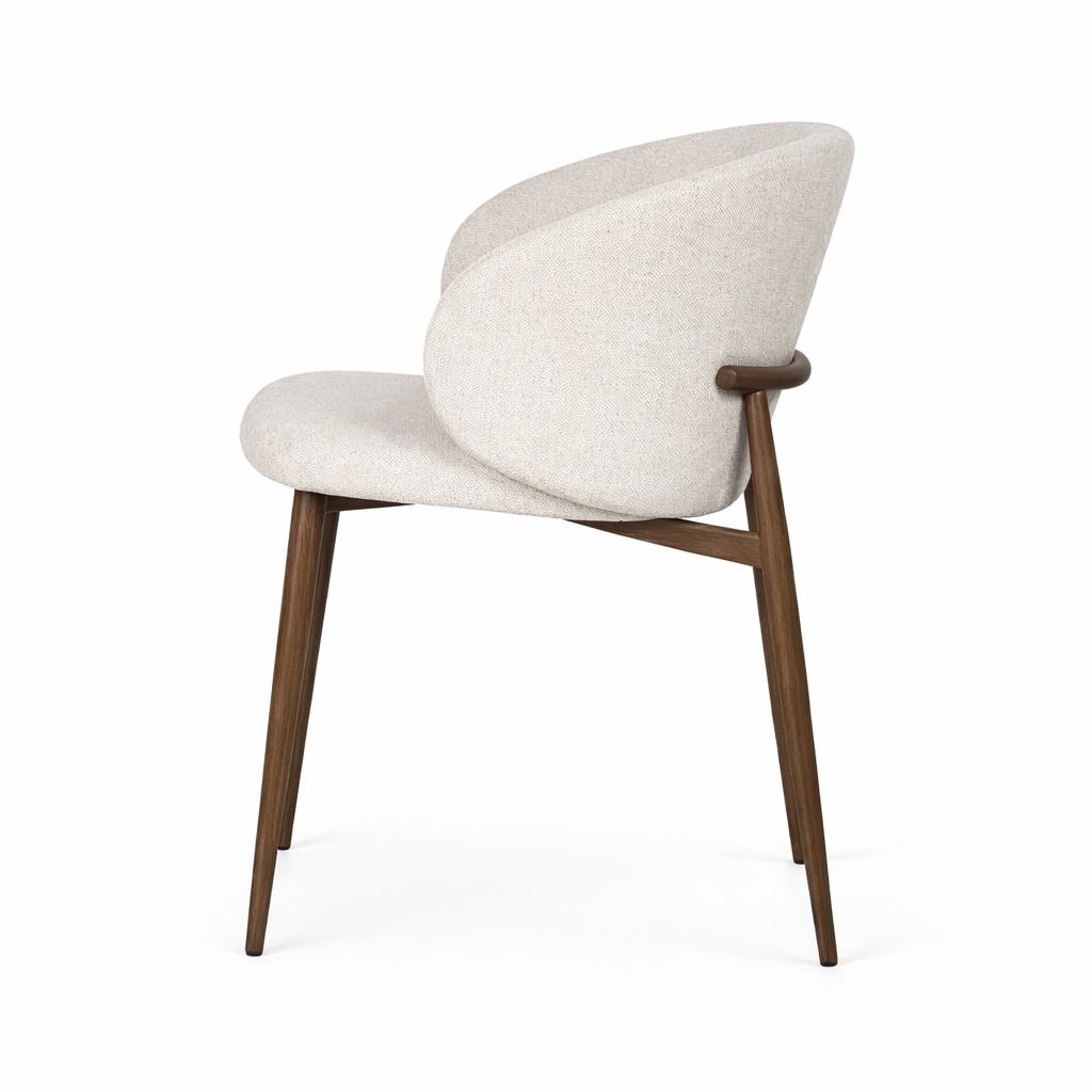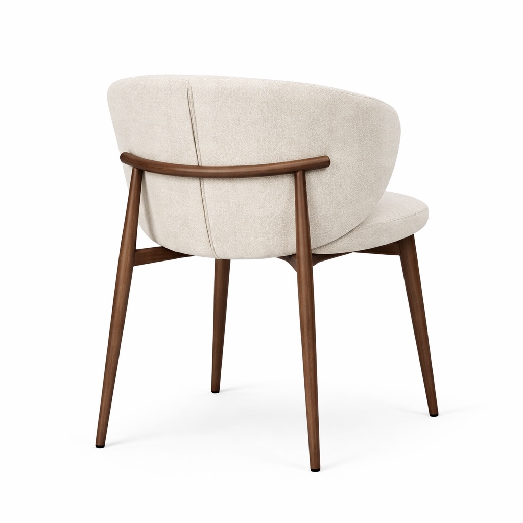 כסא סלבדור בשילוב רגלי מתכת בגוון אגוז בעל עיצוב יוקרתי וריפודי בד ארוג איכותי בצבע אבן