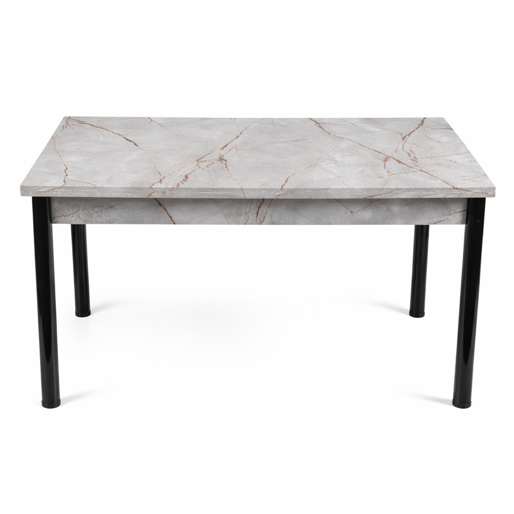 פינת אוכל מעוצבת בשלוש מידות לבחירה בעלת פלטת פורמייקה איכותית בדוגמת שיש עדין.