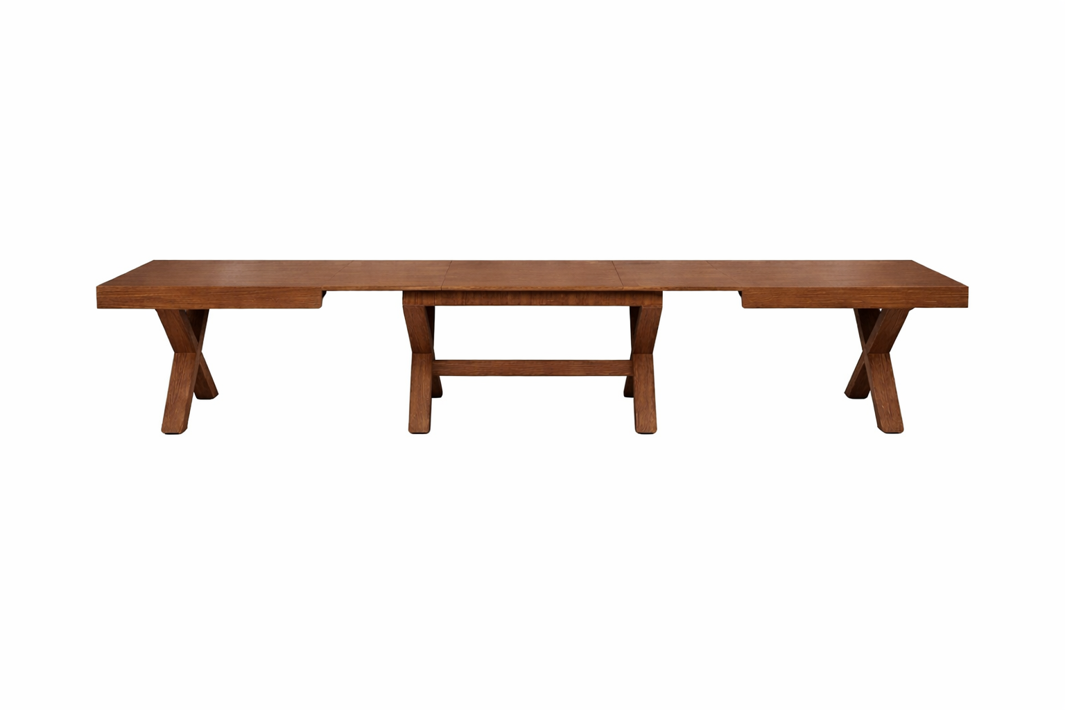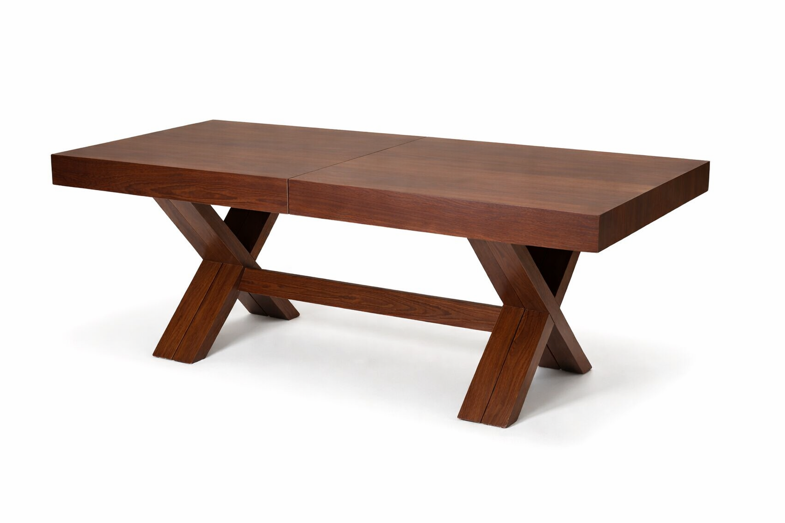 שולחן אריה עץ אלון בגוון אגוז במידה 180X100 ס"מ עם 4 הגדלות של 50 ס"מ סה"כ 380 ס"מ.