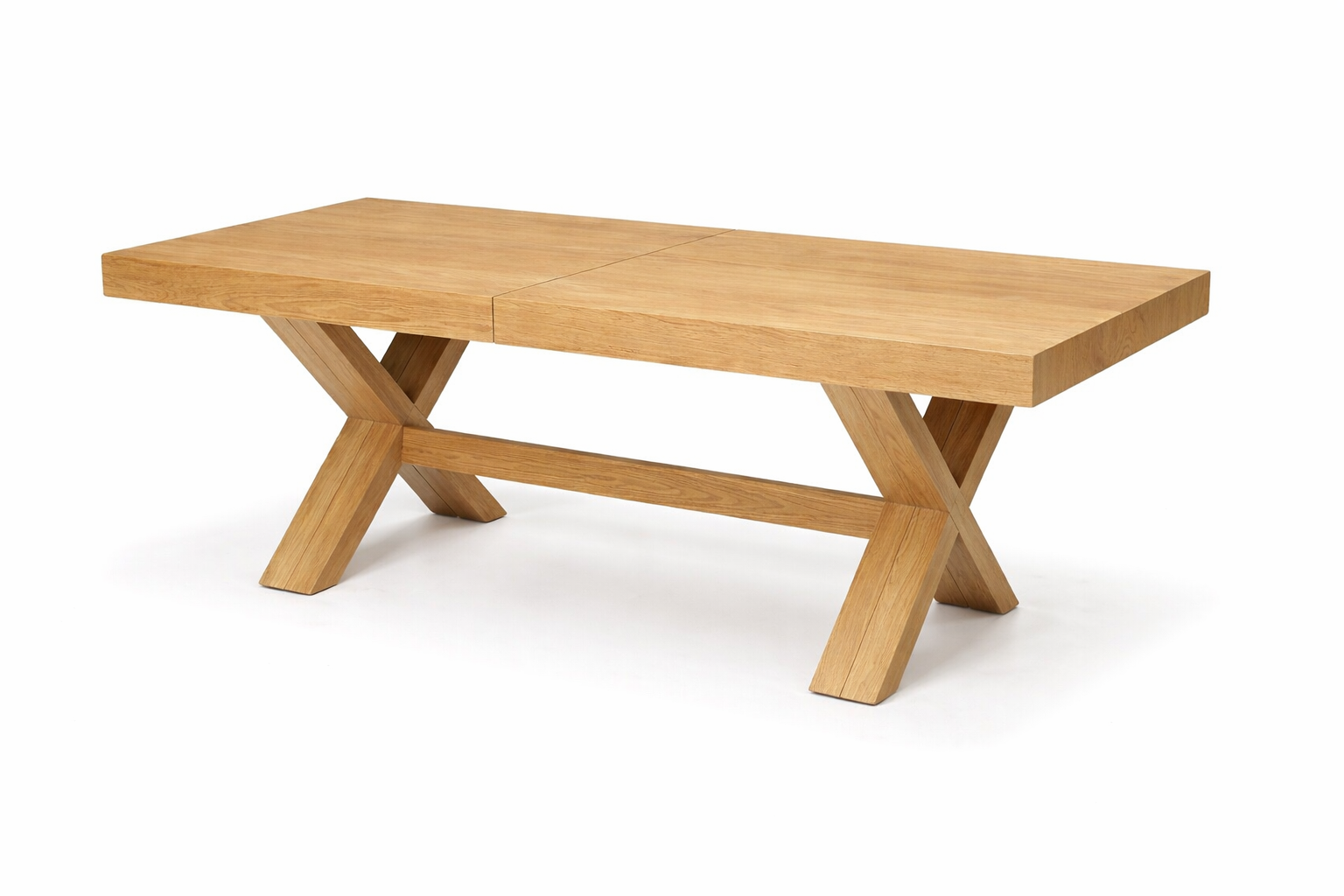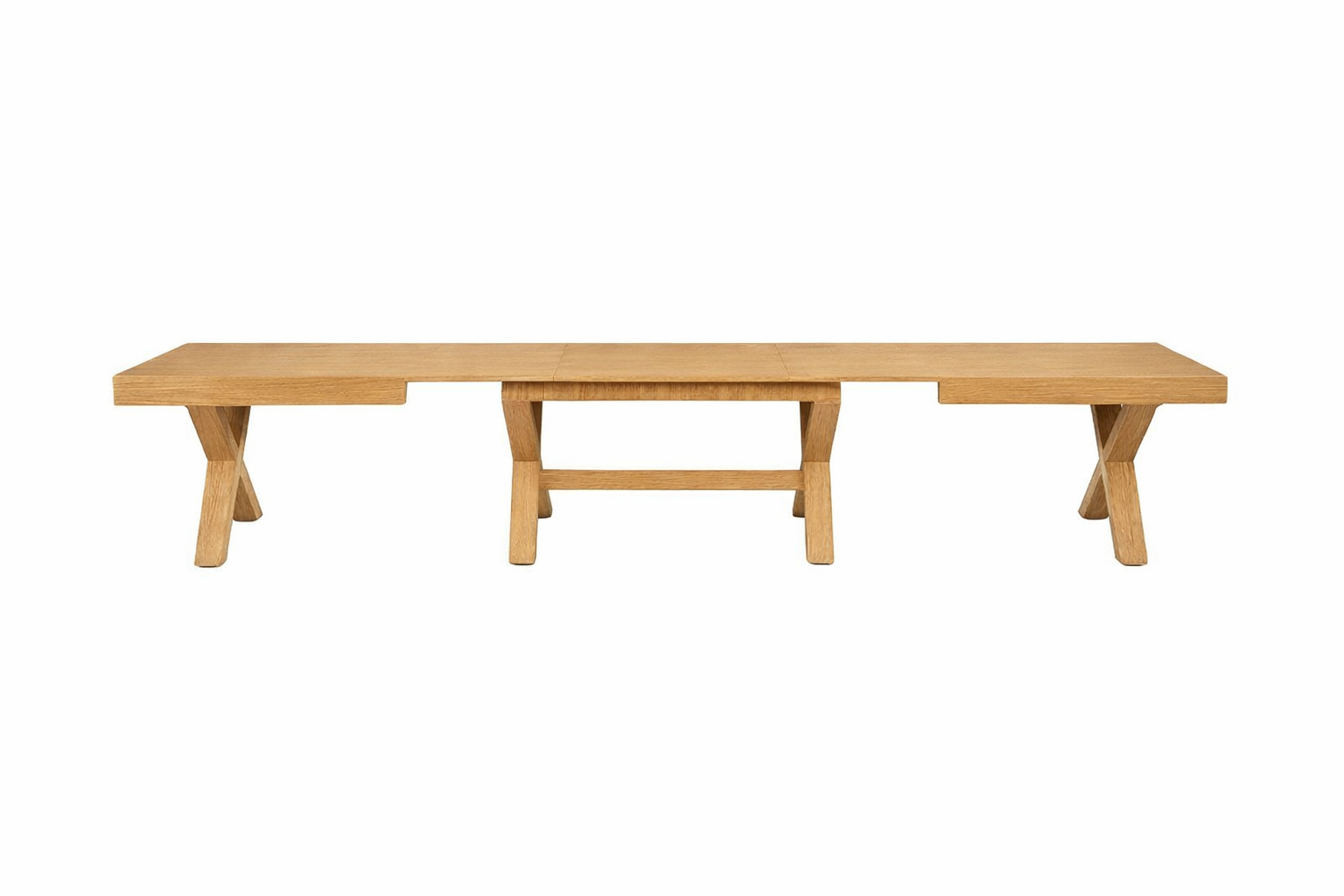 שולחן אריה עץ אלון בגוון אלון במידה 180X100 ס"מ עם 4 הגדלות של 50 ס"מ סה"כ 380 ס"מ.